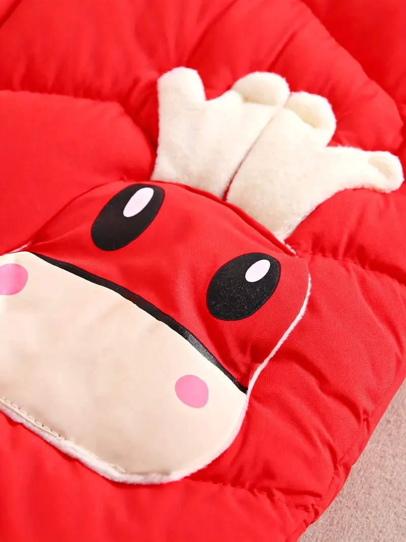 Acest combinezon roșu, căptușit cu plus, menține micuțul tău cald și confortabil în zilele reci de iarnă. Cu fermoar practic și glugă protectoare, este perfect pentru plimbările de iarnă. Mărime: 100 cm.