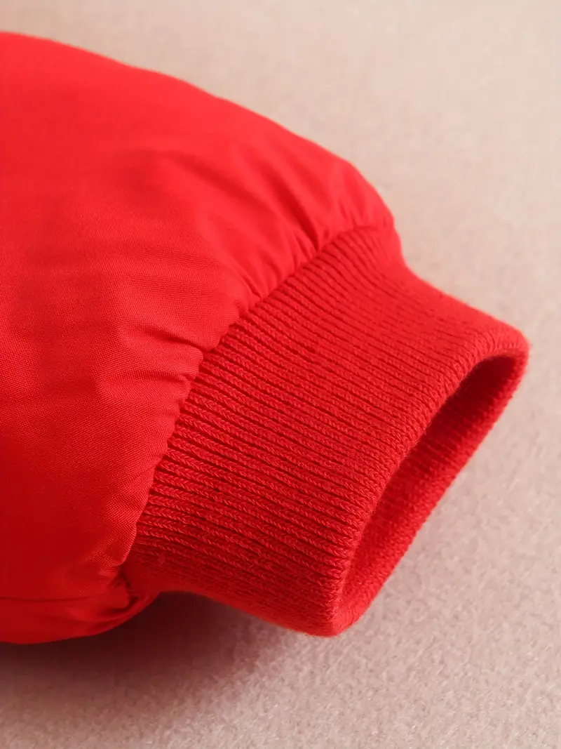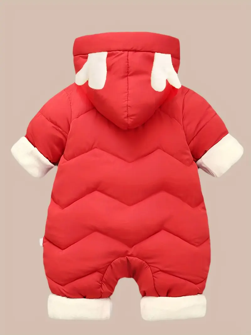 Acest combinezon roșu, căptușit cu plus, menține micuțul tău cald și confortabil în zilele reci de iarnă. Cu fermoar practic și glugă protectoare, este perfect pentru plimbările de iarnă.