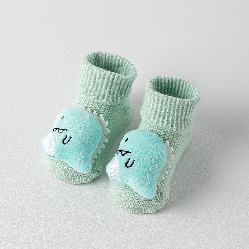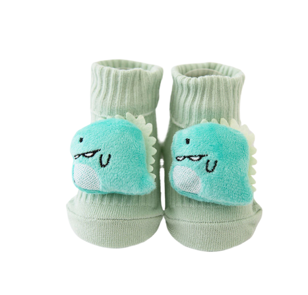 Sosete pentru copii, antiderapante, model cu dinozaur, culoare verde deschis, marime 1 - 2 ani, anti-alunecare