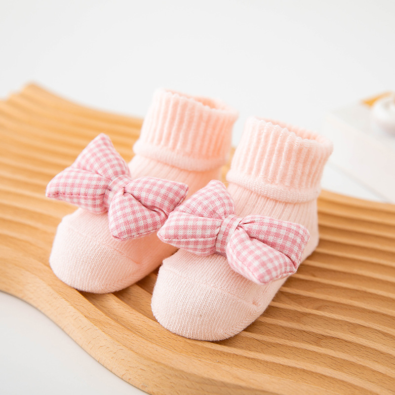 Sosete pentru copii, antiderapante, model cu fundita, culoare roz deschis, marime 0 - 1 ani, anti-alunecare