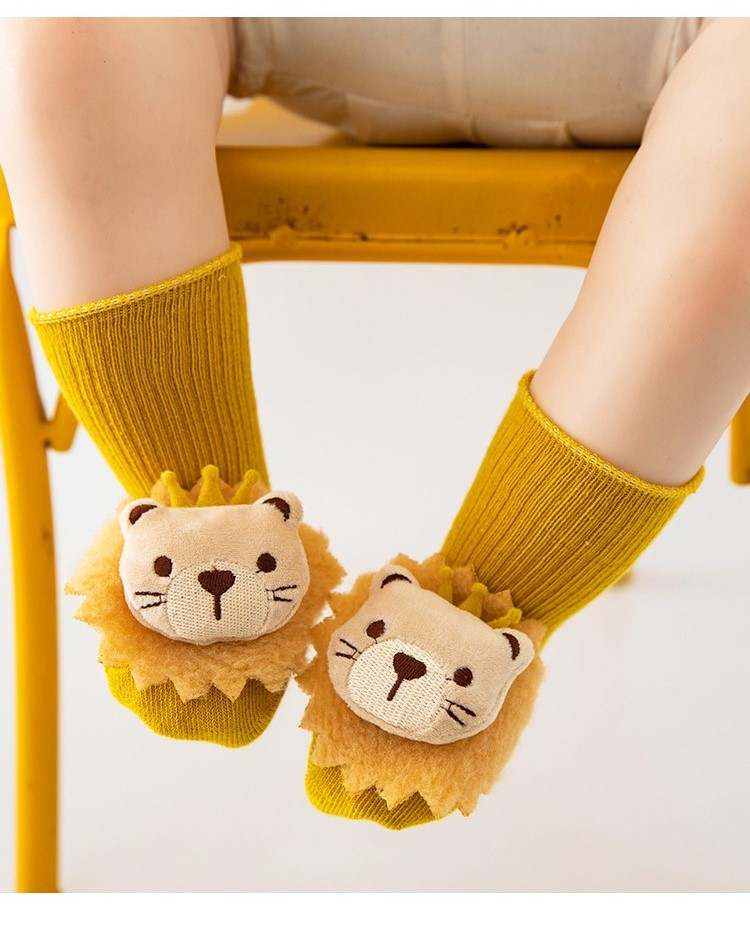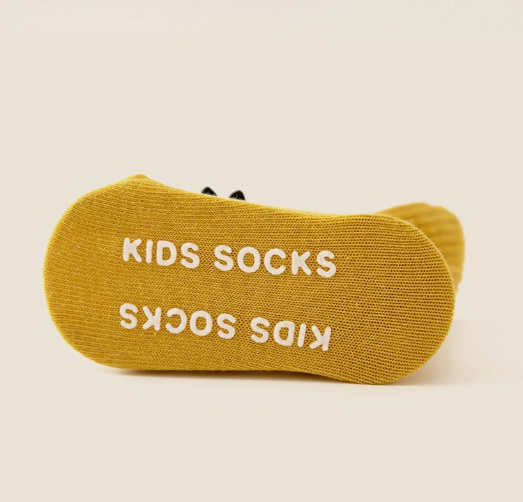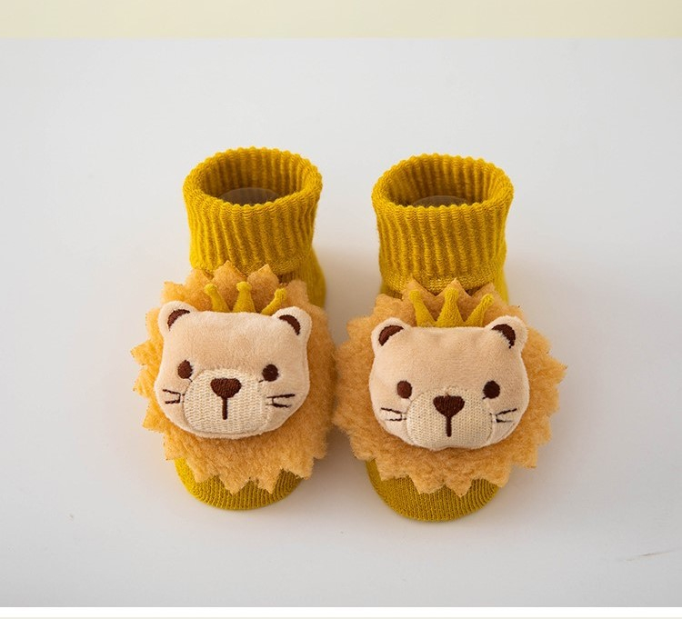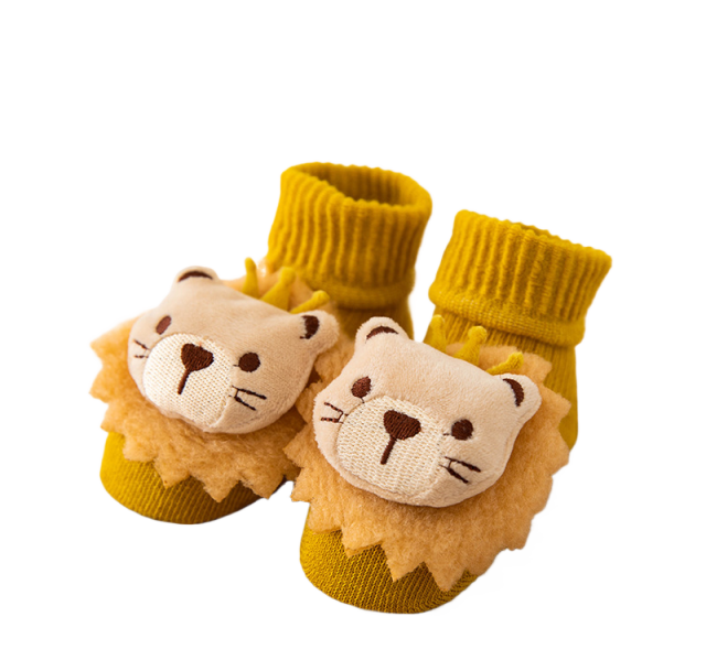 Sosete pentru copii, antiderapante, model cu leu, culoare mustar, marime 1 - 2 ani, anti-alunecare